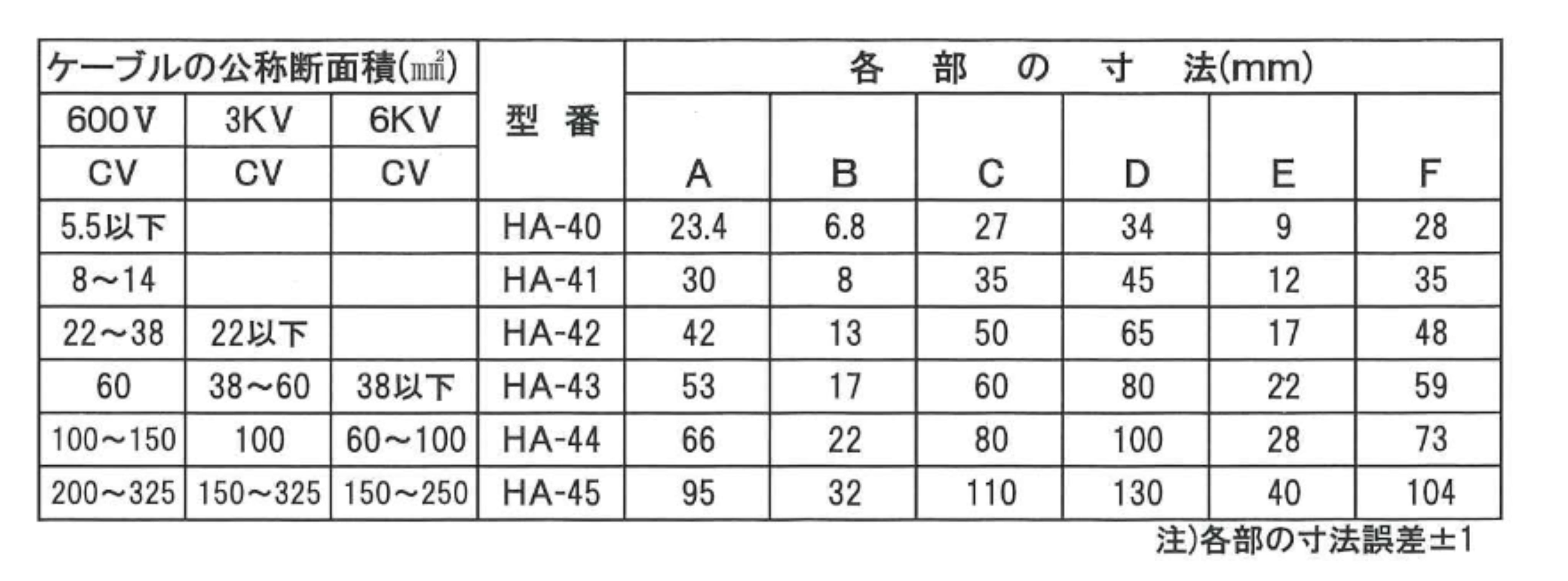 600V CV 5.5以下に使用できます。